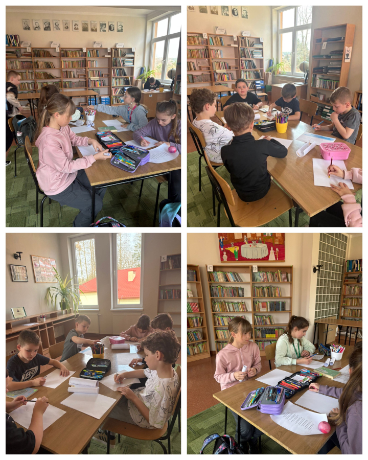 Z okazji Dnia Poezji w naszej bibliotece zrobiło się naprawdę kolorowo i radośnie. Uczniowie, którzy do niej zajrzeli, mogli pobawić się poezją w nietypowy sposób – losowali fragmenty wierszy, a potem zamieniali je w obrazy pełne barw, kształtów i wyobraźni. Słowa ożywały na kartkach jako rysunki i kolory, pokazując, że poezja może mówić nie tylko językiem liter, ale też obrazów. To była świetna zabawa i dowód na to, że wiersze mogą mieć naprawdę wiele twarzy.