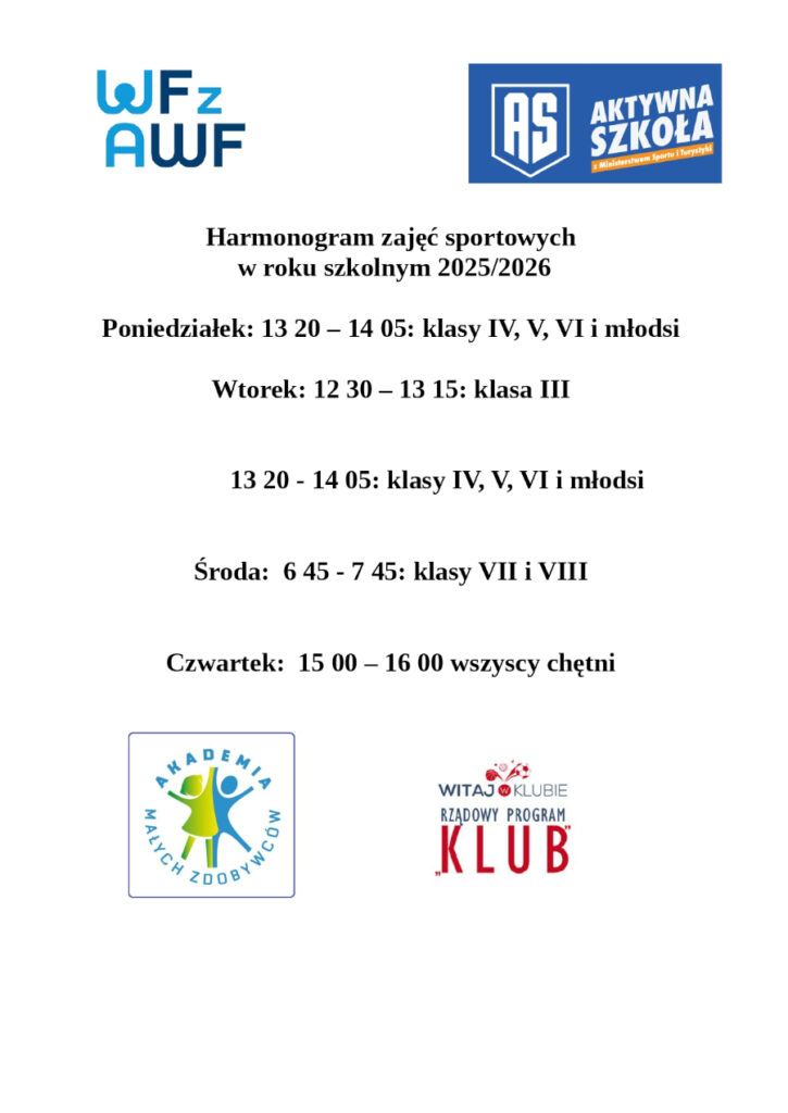 Harmonogram zajęć sportowych w roku szkolnym 2025/2026