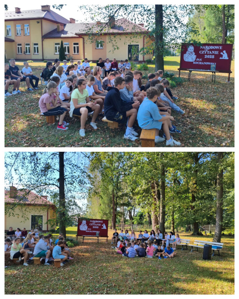Publiczność – zarówno uczniowie, jak i nauczyciele – słuchała ich z prawdziwą przyjemnością. Widać było, że młodzi recytatorzy wkładali serce nie tylko w słowa, ale też w sposób, w jaki je podawali – z uśmiechem, powagą, a czasem teatralnym gestem. Dzięki nim poezja Kochanowskiego ożyła pod szkolną brzozą.