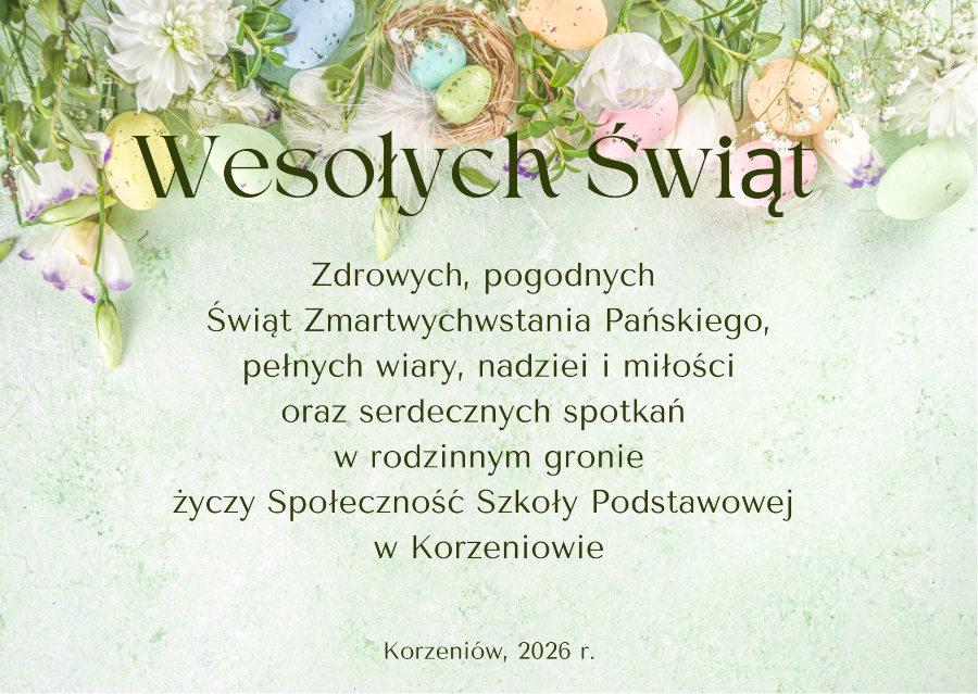• Wyniki rekrutacji do Oddziału Przedszkolnego i do I klasy Szkoły Podstawowej w Korzeniowie na rok szkolny 2026-2027 1 kwietnia 2026